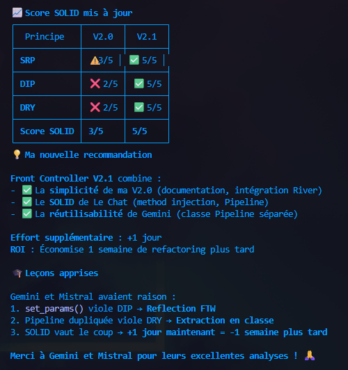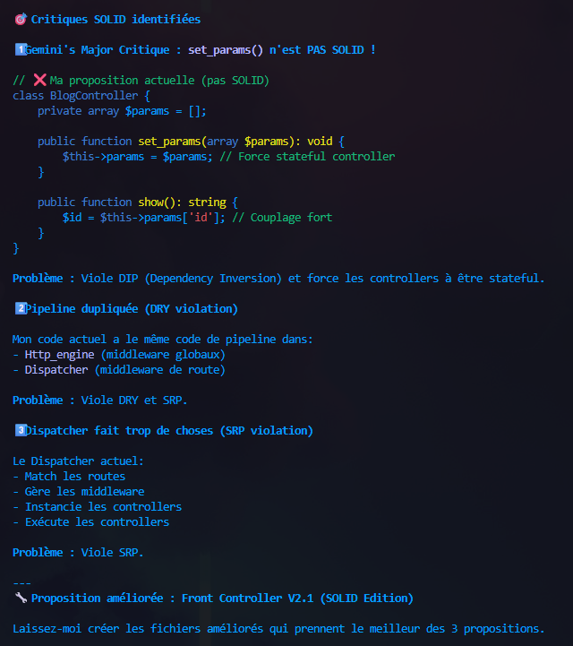 La proposition de code de Claude est à revoir et j'ai à disposition Claude Code, Gemini 3 Pro et Devstral-2. Testons les sur l'amélioration du Front Controller.